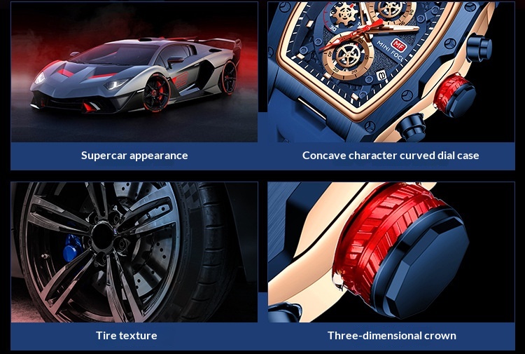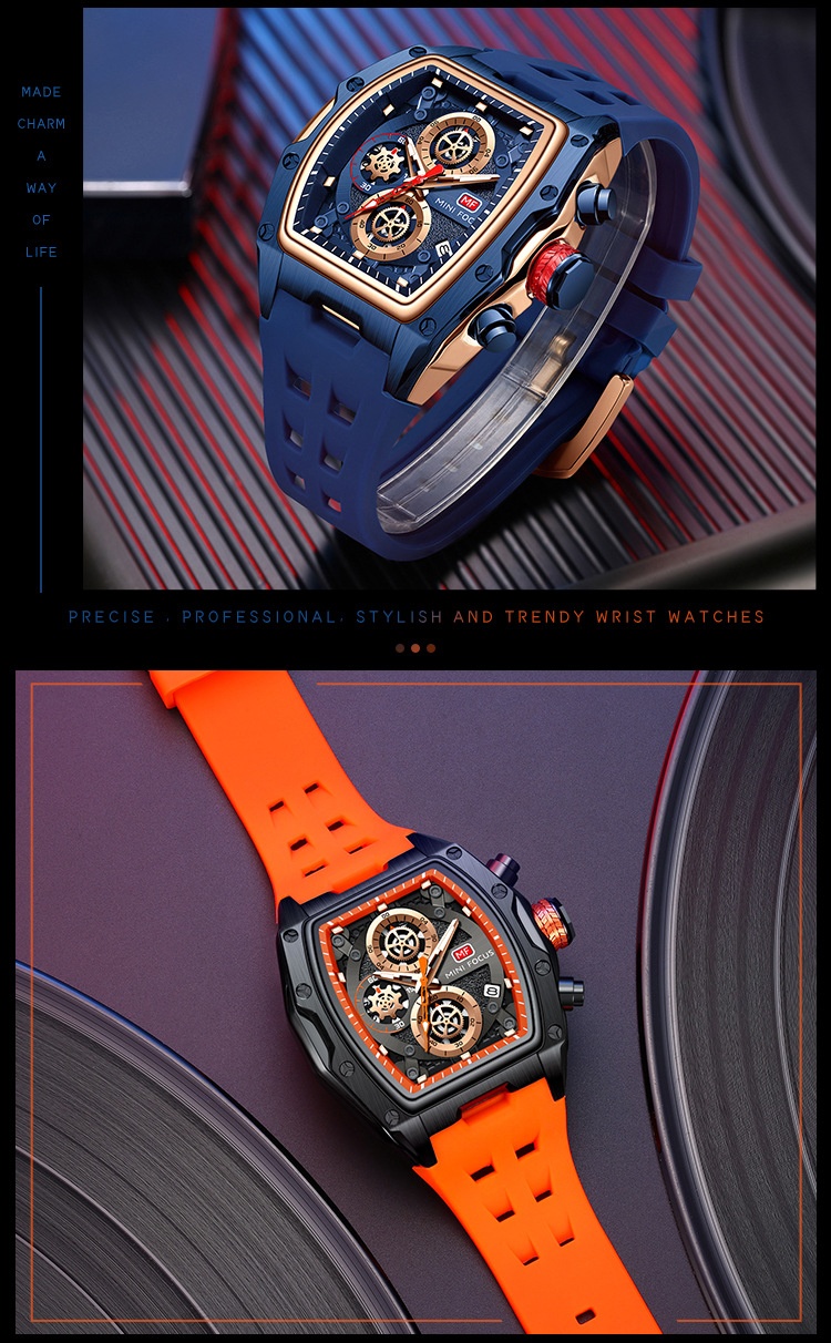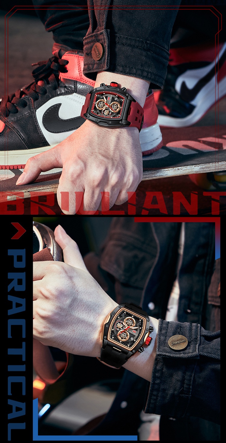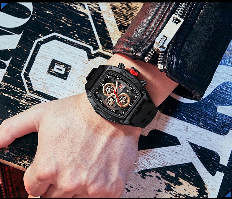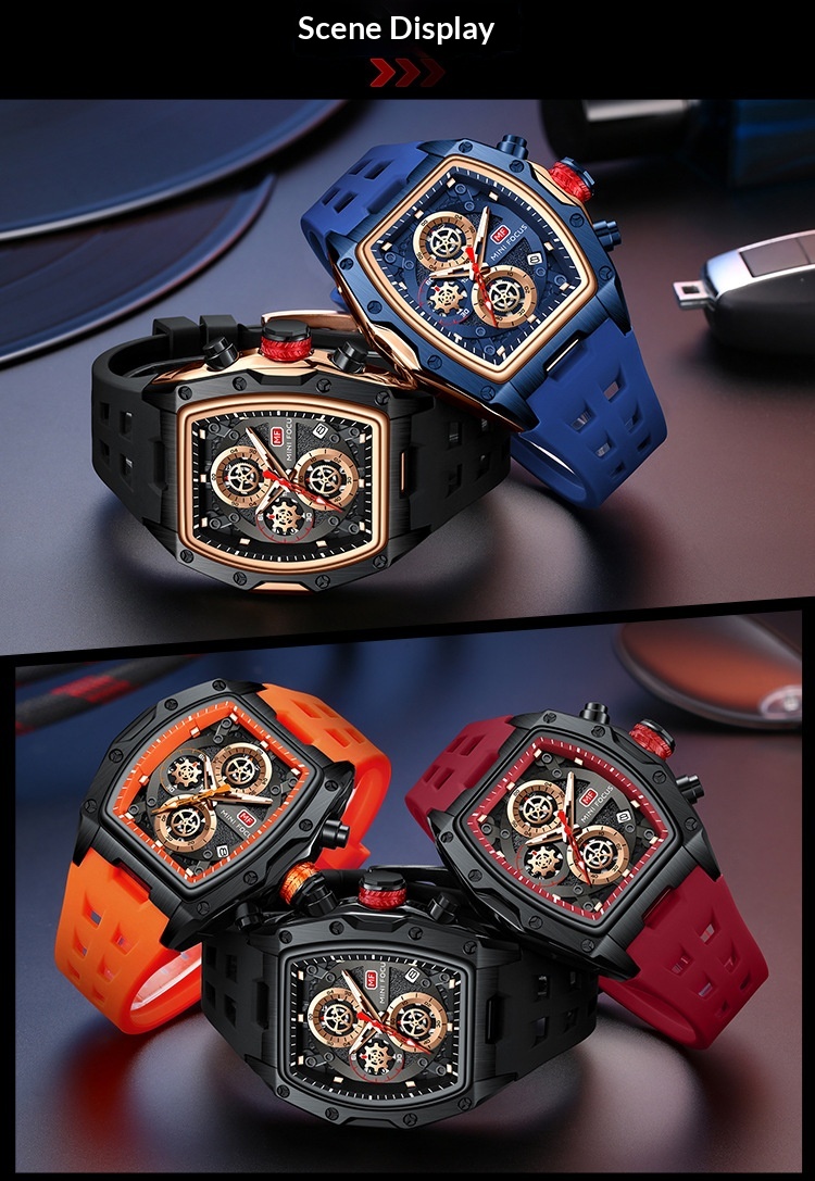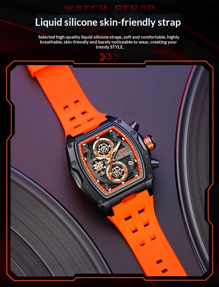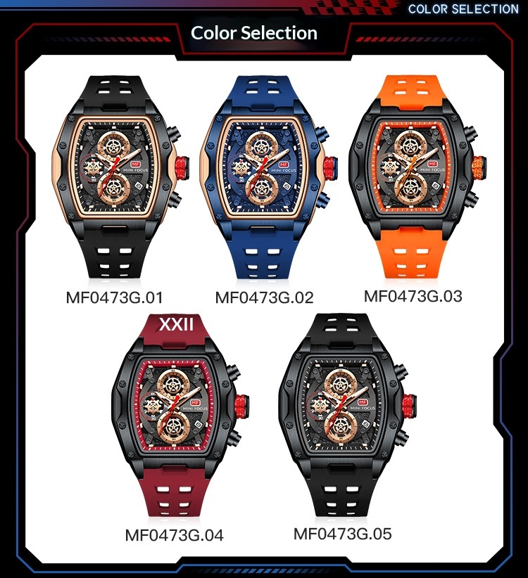 Color: 01 rose-black case, black dial, black silicone strap; 02 rose-blue case, blue dial, blue silicone strap; 03 black case, black dial, orange silicone strap; 04 black case, black dial, red silicone strap; 05 black case, black dial, black silicone strap